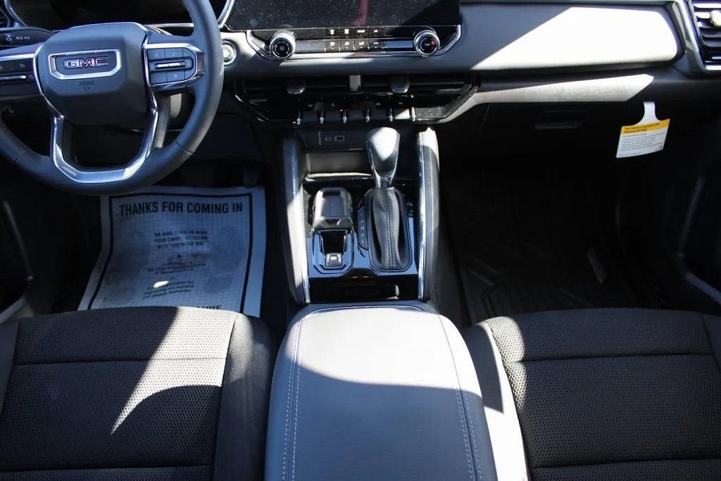This GMC Canyon has many features and is well equipped including, 1 Rear USB Port in Center Console (Charge-Only), 2 1st Row USB Charge/Data Ports, 3.42 Rear Axle Ratio, 4-Way Manual Front Passenger Seat Adjuster, 4-Wheel Disc Brakes, 6 Speakers, 6-Speaker Audio System Feature, 6-Way Manual Driver Seat Adjuster, ABS brakes, Air Conditioning, All-Weather Floor Mats, Alloy wheels, AM/FM radio, Apple CarPlay/Android Auto, Auto High-beam Headlights, Automatic Emergency Braking, Automatic Stop/Start, Black Lug Nut & Wheel Lock Kit (LPO), Blind Zone Steering Assist w/Trailering, Brake assist, Bumpers: body-color, Canyon Pro Safety, Canyon Safety Plus Package, Cloth Seat Trim, Compass, Delay-off headlights, Driver door bin, Driver vanity mirror, Dual front impact airbags, Dual front side impact airbags, Electronic Stability Control, Emergency communication system: OnStar, Following Distance Indicator, Forward Collision Alert, Front anti-roll bar, Front Bucket Seats, Front Center Armrest, Front Passenger Seatback Map Pocket, Front Pedestrian & Bicyclist Braking, Front wheel independent suspension, Heated door mirrors, Illuminated entry, IntelliBeam Automatic High Beam On/Off, Lane Keep Assist w/Lane Departure Warning, Low tire pressure warning, Navigation System, Occupant sensing airbag, Off-Road Suspension, Outside temperature display, Overhead airbag, Overhead console, Panic alarm, Passenger door bin, Passenger vanity mirror, Power door mirrors, Power steering, Power windows, Preferred Equipment Group 2VL, Premier Soft Roll-Up Truck Bed Cover (LPO), Radio data system, Radio: 11.3 Diagonal Premium GMC Infotainment Sys, Rear Cross Traffic Braking, Rear reading lights, Rear step bumper, Rear window defroster, Remote keyless entry, Remote Start Kit w/2 Key Fobs (LPO), Security system, SiriusXM w/360L, Speed control, Speed-sensing steering, Split folding rear seat, Spray-On Bedliner w/GMC Logo, Steering wheel mounted audio controls, Stop/Start System Disable Button Engine Control, Tachometer, Tilt steering wheel, Traction control, Trip computer, Ultrasonic Rear Park Assist, Variably intermittent wipers, Wheels: 18 x 8.5 Gloss Black Finish Aluminum, Wireless Apple CarPlay/Wireless Android Auto.