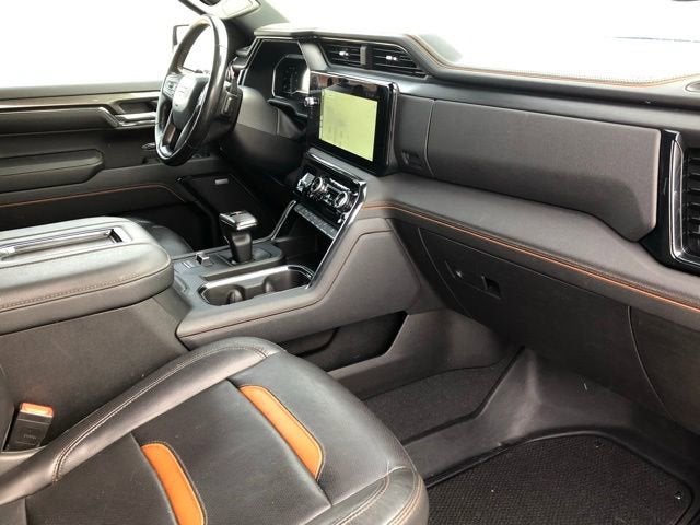 This GMC Sierra 1500 has many features and is well equipped including, 10-Way Power Driver Seat Adjuster w/Lumbar, 10-Way Power Passenger Seat Adjuster w/Lumbar, 120-Volt Bed Mounted Power Outlet, 120-Volt Instrument Panel Power Outlet, 18 x 8.5 Machined Aluminum Wheels, 2 Charge/Data USB Ports Inside Center Console, 2 Type-C Charge-Only Rear USB Ports, 2 USB Ports, 3 Years of OnStar Safety & Security, 3.23 Rear Axle Ratio, 4-Wheel Disc Brakes, 7 Speakers, Adaptive Cruise Control, Alloy wheels, AM/FM radio: SiriusXM with 360L, Apple CarPlay/Android Auto, AT4 Preferred Package, Auto-dimming door mirrors, Auto-dimming Rear-View mirror, Auto-Locking Rear Differential, Automatic Emergency Braking, Automatic temperature control, Black Chrome Header & Grille Insert Bars, Brake assist, Buckle to Drive, Bumpers: body-color, Color-Keyed Carpeting Floor Covering, Compass, Deep-Tinted Glass, Delay-off headlights, Driver Memory, Electrical Steering Column Lock, Electronic Stability Control, Emergency communication system: OnStar and GMC Connected Services capable, Engine Block Heater, Front Rainsensing Wipers, GMC Connected Access Capable, Heated 2nd Row Outboard Seats, Heated door mirrors, Heated Driver & Front Outboard Passenger Seating, Heated front seats, Heated rear seats, Heavy-Duty Air Filter, Hill Descent Control, Hitch Guidance, Hitch Guidance w/Hitch View, IntelliBeam Automatic High Beam On/Off, Keyless Open & Start, LED Cargo Area Lighting, Memory seat, Navigation System, Occupant sensing airbag, Off-Road Suspension, OnStar & GMC Connected Services Capable, Outside temperature display, Overhead airbag, Overhead console, Passenger door bin, Passenger vanity mirror, Perforated Front Leather Seat Trim, Power Door Locks, Power Rake & Telescoping Steering Column, Power Sliding Rear Window w/Rear Defogger, Power Sunroof, Preferred Equipment Group 4SB, Push Button Start, Rain sensing wipers, Rear reading lights, Rear seat center armrest, Red Recovery Hooks, Remote Vehicle Starter System, Safety Alert Seat, Speed control, Speed-sensing steering, Spray-On Pickup Bed Liner w/AT4 Logo, Steering Wheel Audio Controls, Theft Deterrent System (Unauthorized Entry), Traction control, Trailering Package, Universal Home Remote, Variably intermittent wipers, Ventilated Driver & Front Passenger Seats, Ventilated front seats, Wheels: 20 x 9 Machined Aluminum, Wi-Fi Hotspot Capable, Wireless Charging.